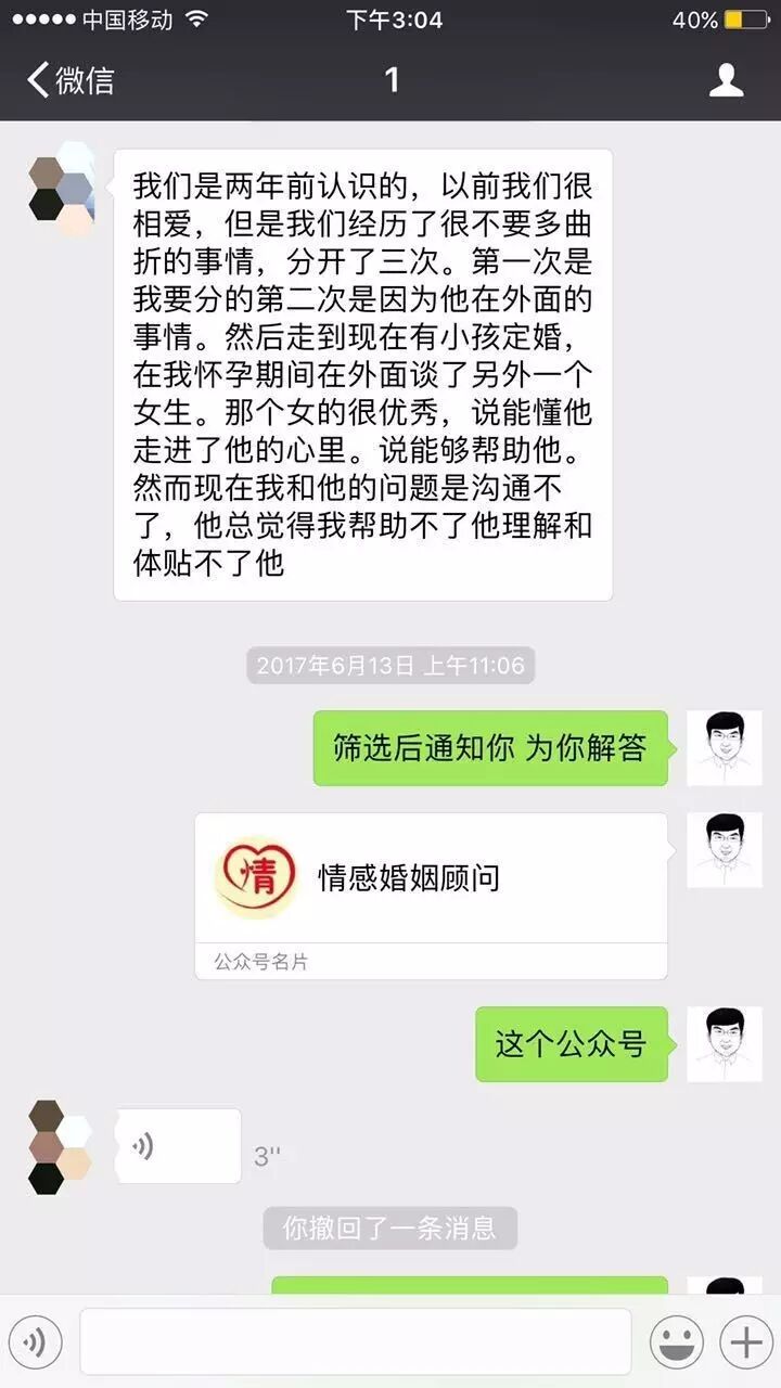 第一次是我要分的第二次是因为他在外面的事情。然后走到现在有小孩订婚,在我怀孕期间在外面谈了另外一个女生。那个女的很优秀,懂他能够帮助他。